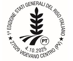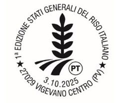 In occasione degli Stati Generali di Vigevano non poteva non proseguire l’omaggio filatelico ed ecco allora realizzato, con la collaborazione di Poste Italiane, un doppio annullo speciale previsto per i giorni 3 e 4 ottobre (presso lo stand posizionato in piazza Ducale – orario 12,00-18,00) dove sarà possibile obliterare la corrispondenza e le cartoline dedicate, sia quella realizzata per il “primo giorno di emissione” che quelle realizzate utilizzando altri due bozzetti per il francobollo Carnaroli che furono proposti al Mimit da Giannotti. L’annullo, identico in entrambe le giornate, in formato tondo, riproduce il marchio della Strada Del Riso Dei Tre Fiumi Ets ed è completato dalla scritta “1^ Edizione Stati Generali del Riso Italiano – 3.10.2025 / 4.10.2025 – 27029 Vigevano Centro (Pv)”. Le impronte saranno poi disponibili presso l’Ufficio Postale di Vigevano – sportello filatelico – Via De Amicis 2 per i successivi 60 giorni, al termine dei quali verranno depositate presso il Museo della Comunicazione di Roma.