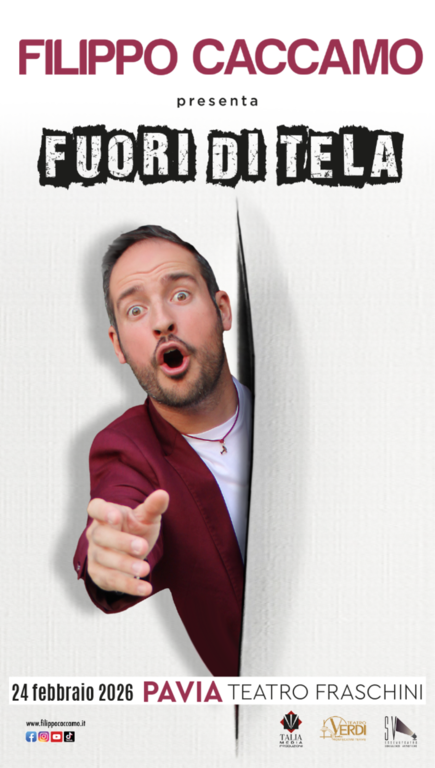 Puzzle Concerti è lieta di annunciare il grande ritorno di FILIPPO CACCAMO e il suo nuovo e imperdibile show “FUORI DI TELA” che si terrà nella magnifica cornice del TEATRO FRASCHINI di Pavia il 24 febbraio 2026 alle ore 21:00.