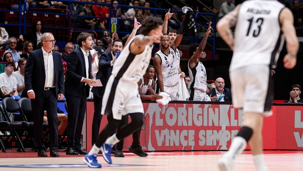 Un esordio straordinario per i bianconeri, che prima mettono in scena un 26-2 di parziale tra secondo e terzo quarto, e poi resistono alla rimonta dei padroni di casa. Finisce 74-71 per i bianconeri, che ottengono la seconda vittoria di sempre con Milano dopo la trasferta corsara della passata stagione.