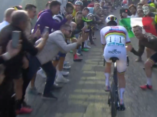 Un uomo solo al comando, la sua maglia è iridata, il suo nome è Tadej Pogacar. Adesso sì che possiamo dirlo senza vergogna né pudore: Fausto Coppi non se ne avrà a male.