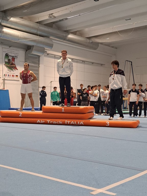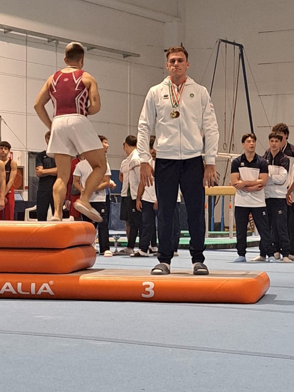 Segue il veterano Davide Saini che nella categoria senior nella specialità del corpo libero svetta in testa a tutti con un ottimo esercizio conquistando il primo posto assoluto, mentre alla specialità del volteggio ottiene un ottimo terzo posto.
