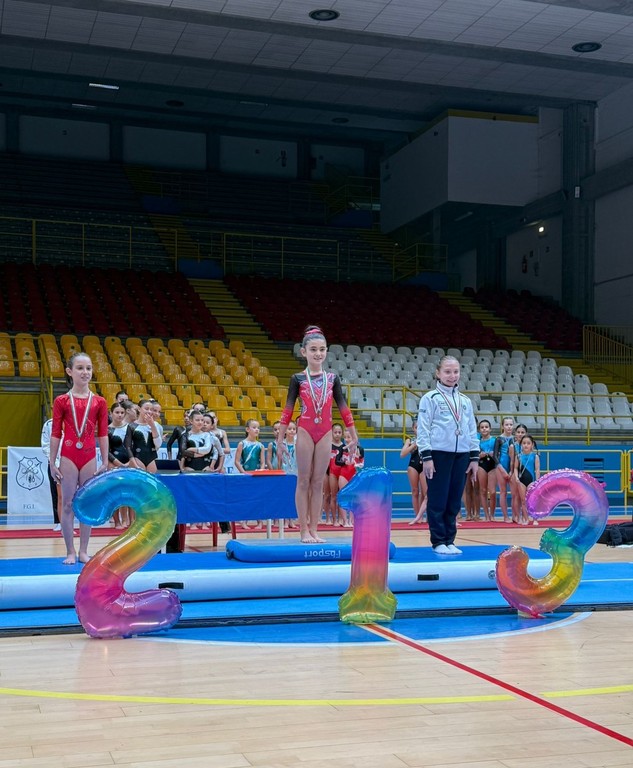 Molto bene Carnevali Asia che dopo un ottima gara conquista un terzo posto assoluto nella categoria A1, grazie a una prova quasi priva di errori e dopo aver svolto ottimi esercizi soprattutto a corpo libero e al volteggio. Bravissime anche le compagne Mazzia Asia e Godio Martina, che conquistano rispettivamente un buon 6° e 7° posto in classifica nella categoria A4, penalizzate nell’esecuzione alla trave.