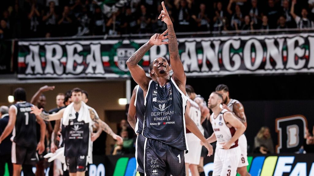 Trapani Shark esce dagli spogliatoi con la voglia e le soluzioni giuste, infilando un 11-2 di parziale che riporta i siciliani sul 57-57 dopo la tripla di Allen. L’MVP delle Finali BNXT League 2024-25 è implacabile in questo frangente e trascina i granata al primo vantaggio della serata (60-62) a 5:05 sul cronometro, ma Gorham reagisce subito dall’arco. Ancora una volta Allen punisce dall’arco a meno di un minuto dal termine del terzo quarto, concluso sul 74-72 per gli ospiti. Il quarto quarto si apre con due triple consecutive di Hubb, che riporta avanti la Bertram 78-76. Trapani risponde con sei punti consecutivi di Petrucelli, prima di un altro tentativo dall’arco a segno di Chapman (10 punti con 3/4 dall’arco). La tensione è protagonista nella seconda metà dell’ultima frazione: la rompono Vital e Baldasso, che spara dall’arco per l’88-84 con 3:30 da giocare. Il capitano non raddoppia, triplica: Baldasso infila altre due bombe dal perimetro per il 96-88 bianconero. Il finale è tutto da vivere, con i bianconeri che spengono sul nascere il tentativo di rimonta dei siciliani.