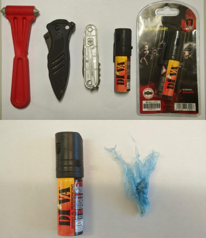 Fermati dalla guardia, il 20 enne, per consentire a lui e alla complice di guadagnarsi la fuga, ha nebulizzato uno spray al peperoncino nel locale, per poi dar vita ad una colluttazione con l’addetto alla vigilanza. I due rapinatori, tuttavia, sono stati intercettati e bloccati dalla pattuglia di Gravellona mentre si apprestavano a fuggire. La refurtiva è stata restituita al direttore del supermercato. Sottoposti entrambi a perquisizione personale sono stati rinvenuti nella disponibilità dell’uomo la bomboletta spray adoperata poco prima e un involucro di sostanza stupefacente del tipo cocaina, dal peso di 0,4 gr; nella disponibilità della 43enne, invece, sono state trovate altre due bombolette spray al peperoncino, ancora integre, un coltello a serramanico con una lama di una lunghezza pari a circa 7 cm, un coltellino svizzero e un martelletto frangivetro.