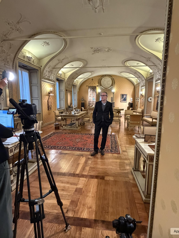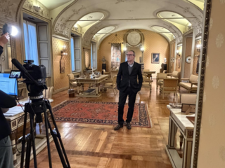 La tappa successiva ha portato gli operatori negli storici uffici del Magnifico Rettore Alessandro Reali. Nel suo studio arredato con mobili stile impero laccati e dorati e i soffitti decorati con stucchi di evidente impronta neoclassica, il Rettore ha ripercorso la storia dell’Università di Pavia, una delle più antiche d’Europa, soffermandosi sul suo ruolo attuale, sulle prospettive internazionali e sui legami profondi con la città.