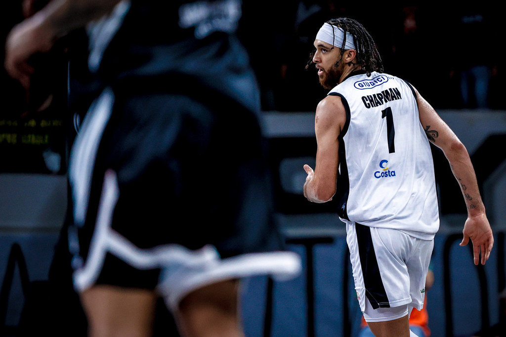 Solido inizio della Bertram Derthona Tortona sul campo dei campioni d’Italia, con un primo parziale di 7-0 che porta i Leoni avanti 11-7 a metà primo quarto. Nonostante il terzo fallo di Vital (14 punti, 4 rubate e 3 assist) a 3:35 sul cronometro il Derthona non demorde, con la Virtus che trova il 20-20 solo con una tripla sulla sirena di Carsen Edwards, che trova prima il tabellone e poi la retina.
