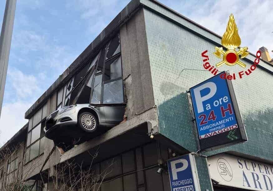 Tragedia sfiorata in tarda mattinata in un’autorimessa di Milano, in via Giacomo Zanella, dove un uomo di 84 anni ha vissuto attimi di puro terrore. L’anziano, a causa di una manovra sbagliata mentre stava uscendo dal garage, ha sfondato il muretto vetrato del primo piano, ritrovandosi pericolosamente in bilico nel vuoto per diversi minuti, sospeso a circa otto metri d’altezza.