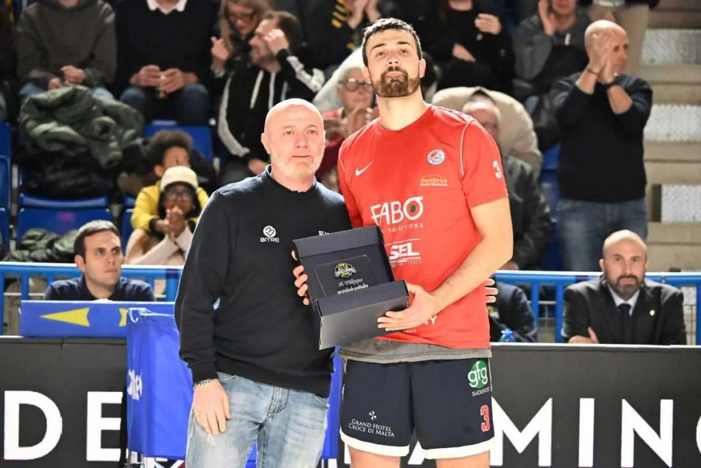 Il suo ingresso in campo ha scatenato gli applausi di tutto il palazzo, e non poteva essere altrimenti per Filippo Rossi, sette stagioni passate fra il 2018 e il 2025 a difendere con onore la maglia gialloblu, fino a diventarne il capitano.