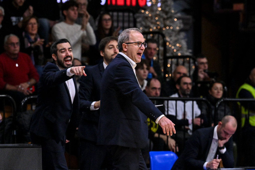 "Devo ringraziare – continua il tecnico tortonese – il lavoro di tutti per quello che stiamo facendo, voglio citare il preparatore Jacopo Torresi, che ha lavorato qui a Cremona tanti anni, e il suo assistente Francesco Sciarretta. E poi i miei due assistenti Iacopo [Squarcina] e Andrea [Vicenzutto), fondamentali nella preparazione alla partita, nello spezzare il gioco delle squadre avversarie, nel lavorare individualmente con i nostri giocatori: molto di questo tipo di lavoro è roba loro, per cui a loro vanno i miei complimenti perché stanno facendo cose incredibili”.