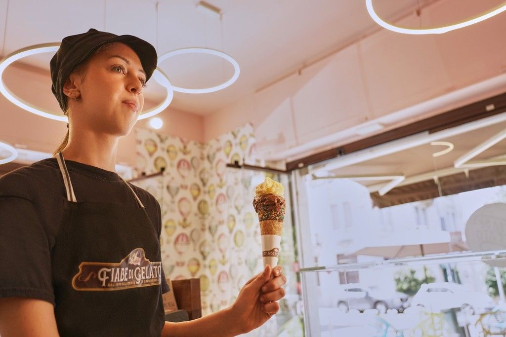 Fiabe di Gelato è tra le gelaterie che hanno ricevuto il Cono Gambero Rosso sia nel 2024 sia nel 2025, un riconoscimento che certifica l’elevata qualità del prodotto, la selezione delle materie prime e la cura artigianale nella produzione.