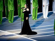 Lo spettacolo è proseguito con un mini musical sulle note di Adriano Celentano e il suo celebre finto inglese di Prisencolinensinainciusol, che ha introdotto un segmento dal ritmo più elettronico. Al centro dello stadio è entrata Sabrina Impacciatore, che ha danzato sulle sonorità elettroniche, portando in scena un momento di forte energia visiva.