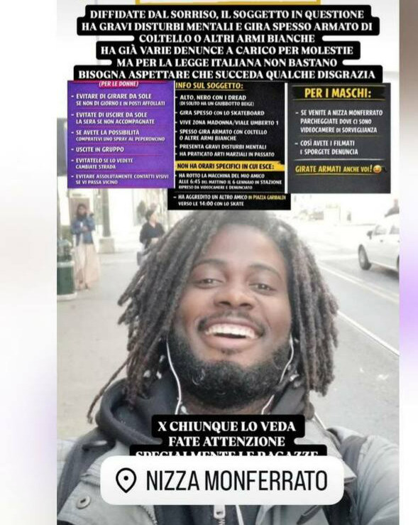 Ma da tempo sui gruppi di Nizza erano comparsi post ignobili e altamente diffamatori, come quello che invitava a "girare armati" perché c'era un "soggetto pericoloso" in giro.