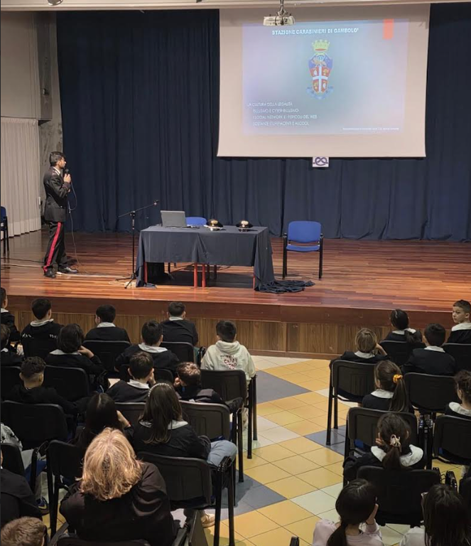 Negli ultimi giorni i Carabinieri della Stazione di Gambolò hanno avuto il piacere di incontrare circa 130 frequentatori dell’Istituto Comprensivo Robecchi, di Corso Giuseppe Garibaldi. Il relatore dell’evento, il Comandante della Stazione Maresciallo Capo BONO Simone, ha illustrato temi di grande rilevanza sociale in maniera chiara ed efficace, come il bullismo, il cyberbullismo, l’educazione digitale e i possibili rischi della rete.