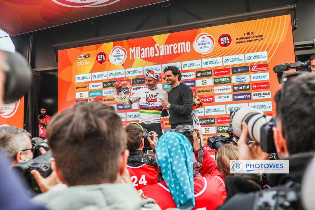 Pochi secondi dopo aver tagliato il traguardo, il vincitore della 117ª Milano-Sanremo Tadej Pogacar, ha dichiarato: "Quando sono caduto, per un secondo ho pensato che fosse tutto finito. È successo poco prima della parte più importante della corsa. Per fortuna sono risalito subito in bici. I miei compagni di squadra Florian Vermeersch e Felix Grossschartner hanno dato tutto per riportarmi davanti. Mi hanno dato speranza. Senza squadra, sarei andato dritto a Sanremo a guardare l’arrivo. Prima del Poggio c’era un po’ di vento contrario. Non era una situazione ideale come l’anno scorso. Avevo timore di Tom Pidcock, sappiamo tutti che è esplosivo e veloce. Non potevo aspettare troppo, quindi ho lanciato presto lo sprint, ma tanto di cappello anche a lui, ha fatto una gara straordinaria".