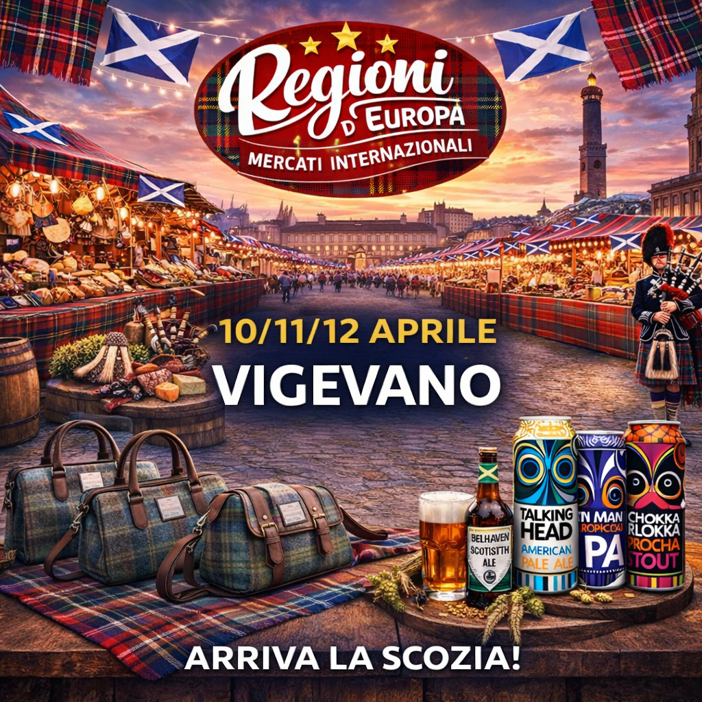 Grande attesa per la colorata ed attesa delegazione scozzese. Facilmente riconoscibile dagli allestimenti nei classici colori del tartan Royal Stewart, l'area dedicata alla Scozia offrirà un'esperienza immersiva nella cultura delle Highlands. Sarà possibile degustare birre artigianali e una selezione ricercata di whisky, ma anche acquistare prodotti iconici come l'haggis e la celebre bevanda Irn Bru. Grande spazio dell’allestimento scozzese sarà riservato all'artigianato tessile: gli amanti della qualità potranno trovare capi in Harris Tweed, la pregiata lana delle Ebridi, oltre a sciarpe, cappelli e accessori in lana cardata, da sempre tra gli articoli più apprezzati dal pubblico di Vimercate.