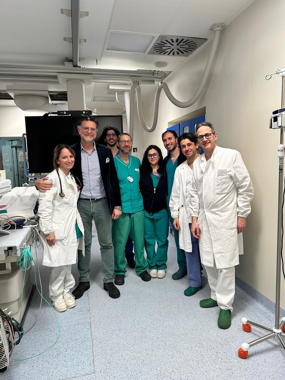 L’equipe era composta dai cardiologi Antonio Sanzo, Alessandro Vicentini e Barbara Petracci, con il supporto del team infermieristico formato da Kadjia Ouisadaane e Roberto Viadana.